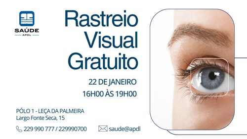 No âmbito da sua responsabilidade social corporativa, no próximo dia 22 de janeiro, a APDL Saúde promove mais um rastreio visual totalmente gratuito, aberto a toda a Comunidade e público em geral, numa perspetiva de contribuir para o bem estar e a diminuição e prevenção de doenças.